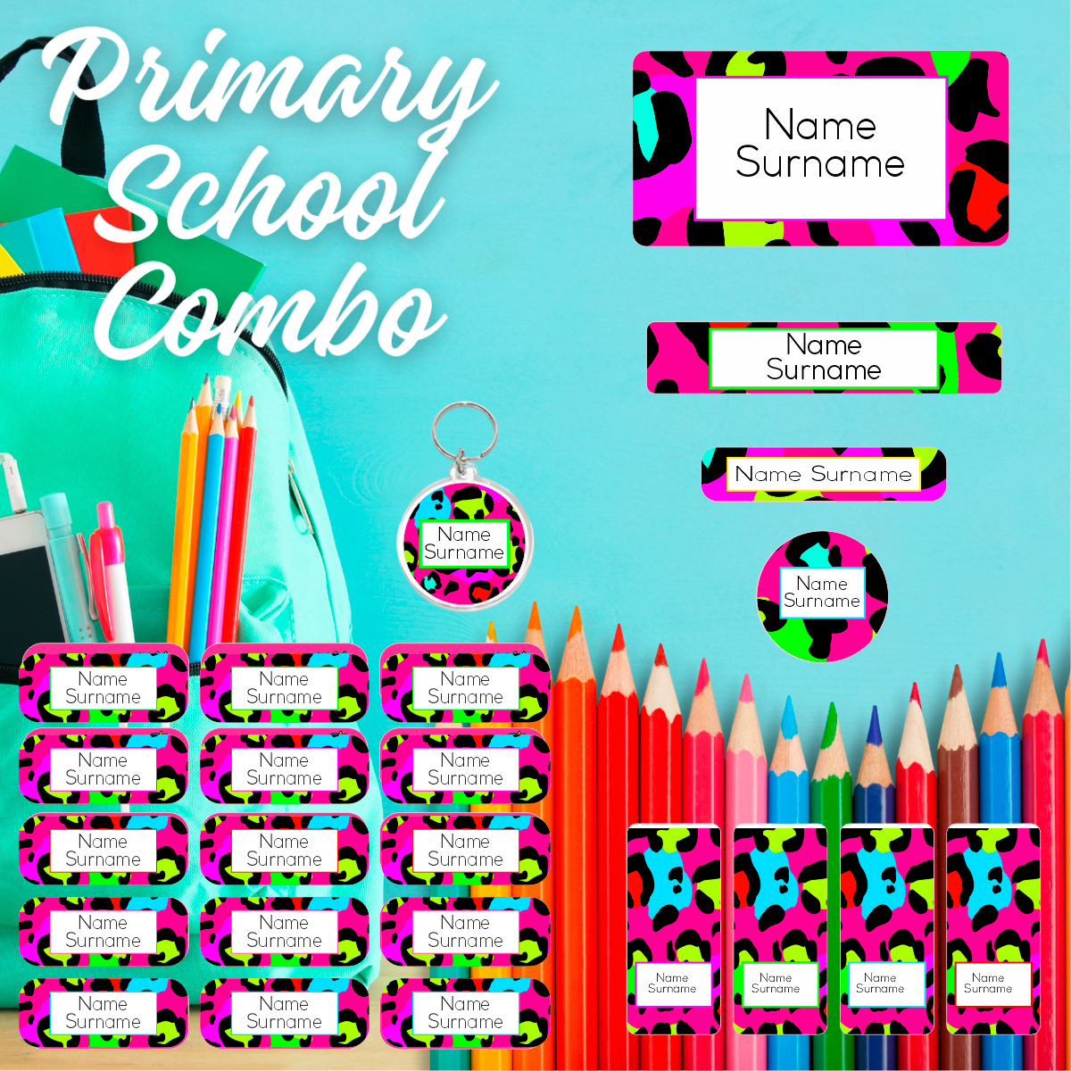 Bright Leopard Print Primary School Label Combo
